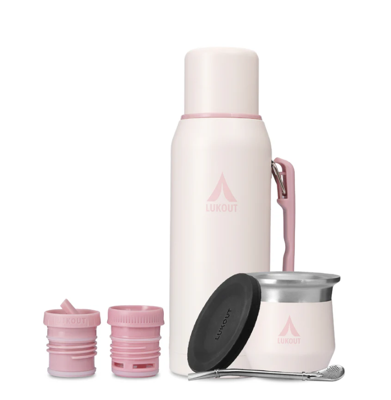 Este kit incluye un termo LUKOUT Pro Handle de 1000 ml, una tapa cebadora y una tapa con boquilla FlowOUT™, un mate de 170 ml, bombilla para mate y una tapa de silicona para el mate. El termo de 1000 ml de LUKOUT es la combinación perfecta de capacidad y rendimiento. Diseñado para los amantes del mate o café y las aventuras al aire libre, mantiene la temperatura tibia hasta 17 horas y fría hasta 34 horas. El mate de 170 ml cuenta con un diseño de doble capa con aislamiento al vacío permite mantener tus líquidos fríos durante 3 horas y tu mate caliente por 30 minutos, ideal para disfrutar en cualquier momento del día. Con un diámetro de 7.5 cm y un peso ligero de 0,2 kg, es fácil de llevar a todas tus aventuras.